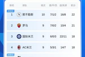 体育资讯11月02日讯 本轮意甲,那不勒斯0-0科莫,尤文2-1克雷莫内塞。先赛的那不勒斯暂1分领跑,尤文升至第5。